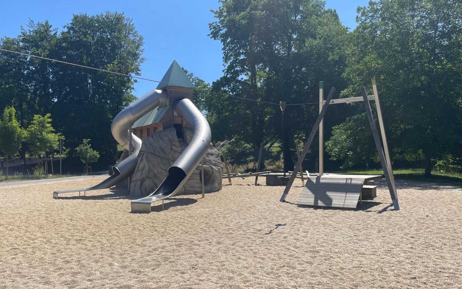 Der Themenspielplatz ist in verschiedene Bereiche gegliedert und bietet für jede Alterskategorie etwas. Es gibt themenreiche Kindersinnwelten mit Wassermann und regionalen Sagen. Er ist in drei klar differenzierte Zonen unterteilt: U3‑Bereich, Kletter‑/Balanceteil („Gespinnst“) und abenteuerliche Hintergrundzone mit Kapellen‑Nachbildung.