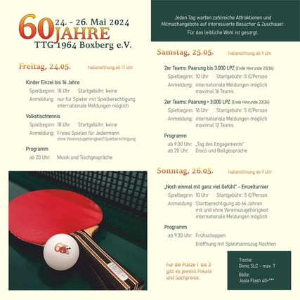Feiert mit uns 60 Jahre Tischtennis