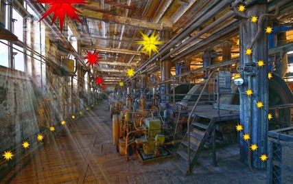 Geplant ist eine Illuminierung des gesamten Geländes der Energiefabrik Knappenrode. Die markante Industriearchitektur soll zusammen mi der traditionellen Sternenbeleuchtung einen ganz besonderen Charme auf den Besucher ausstrahlen. Rund 1.000 Sterne werden etwa 30 Bilder formen. Und man kann die Fabrik so erleben, wie sie noch keiner gesehen hat.