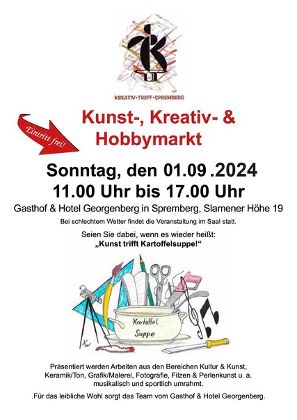 Freuen Sie sich auf einen inspirierenden Tag voller Kunst und Kreativität! Der Gasthof & Hotel Georgenberg laden herzlich ein zum Kunst-, Kreativ- und Hobbymarkt bei freiem Eintritt.