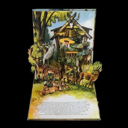 Die Ausstellung »Pop-up Nature« führt zurück in die Bilderwelt der 1960er bis 1980er Jahre, in denen Pop-up-Bücher ihre große Zeit erlebten. Tiere sind hier die Hauptdarsteller von klassischen Märchen wie »Der Froschkönig«, »Der gestiefelte Kater« oder »Die sieben Geißlein« bis zu Jugendbüchern. Die Berliner Ausstellungsmacher Thomas Gubig und Sebastian Köpcke geben einen Einblick in ihre umfassende private Sammlung und stellen die Künstler hinter den dreidimensionalen Geschichten vor.