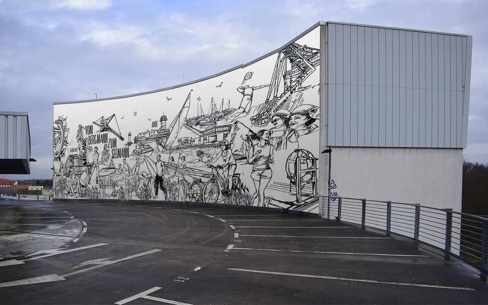 Gestaltungsentwurf für die Wand im Parkhaus Senftenberg, Foto: Die Piktografen GmbH