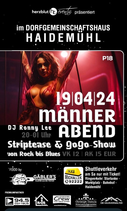 Männerabend mit DJ Ronny Lee, Striptease & GoGo - Show von Rock bis Blues